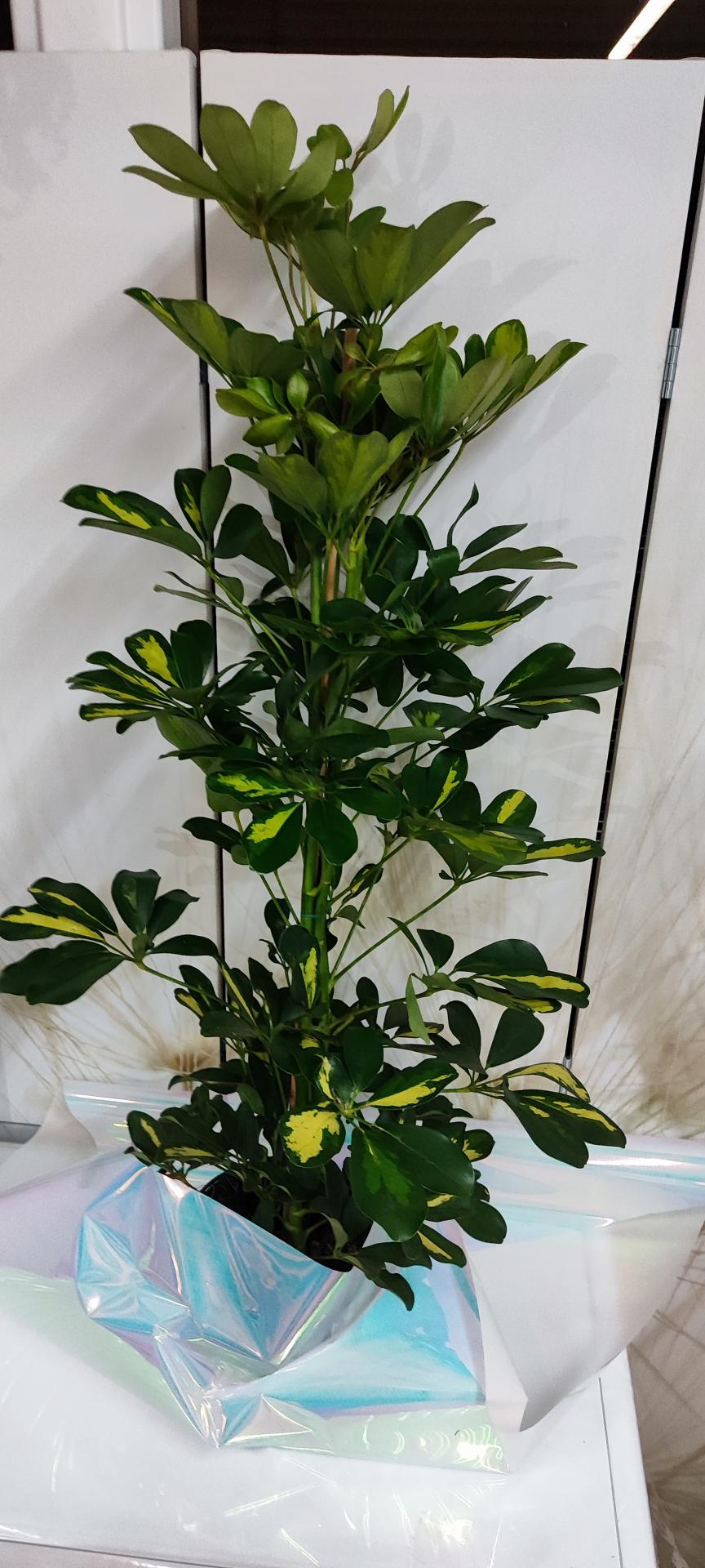Para cuidar una cheflera, colócala en un lugar con luz brillante e indirecta, riegos moderados esperando que la capa superior del sustrato se seque, y mantén una temperatura constante y cálida (entre15−24°C) evitar de corrientes de aire.