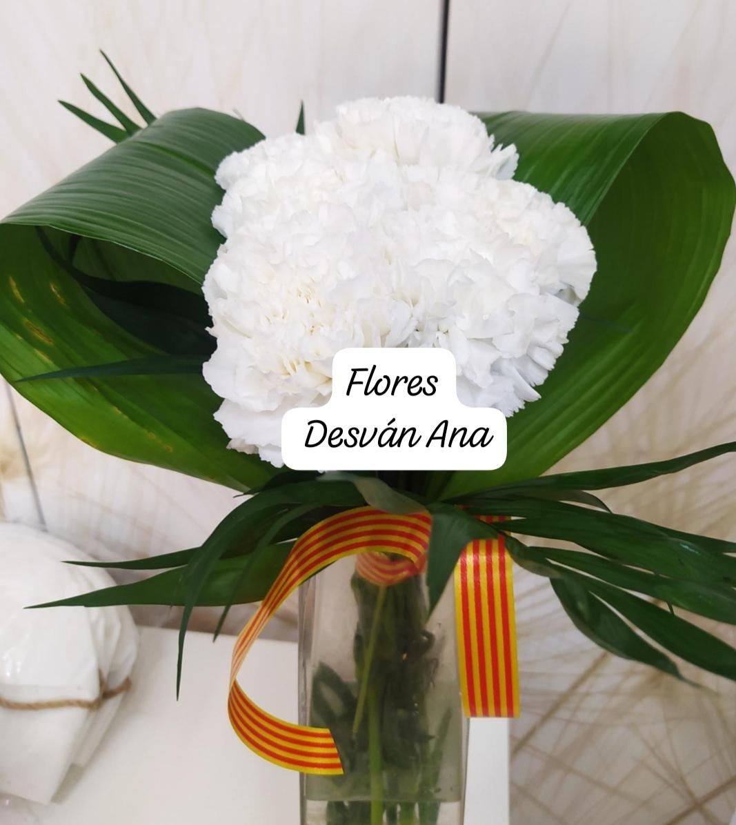Ramo de claveles BLANCO verdes y cinta de Aragón.