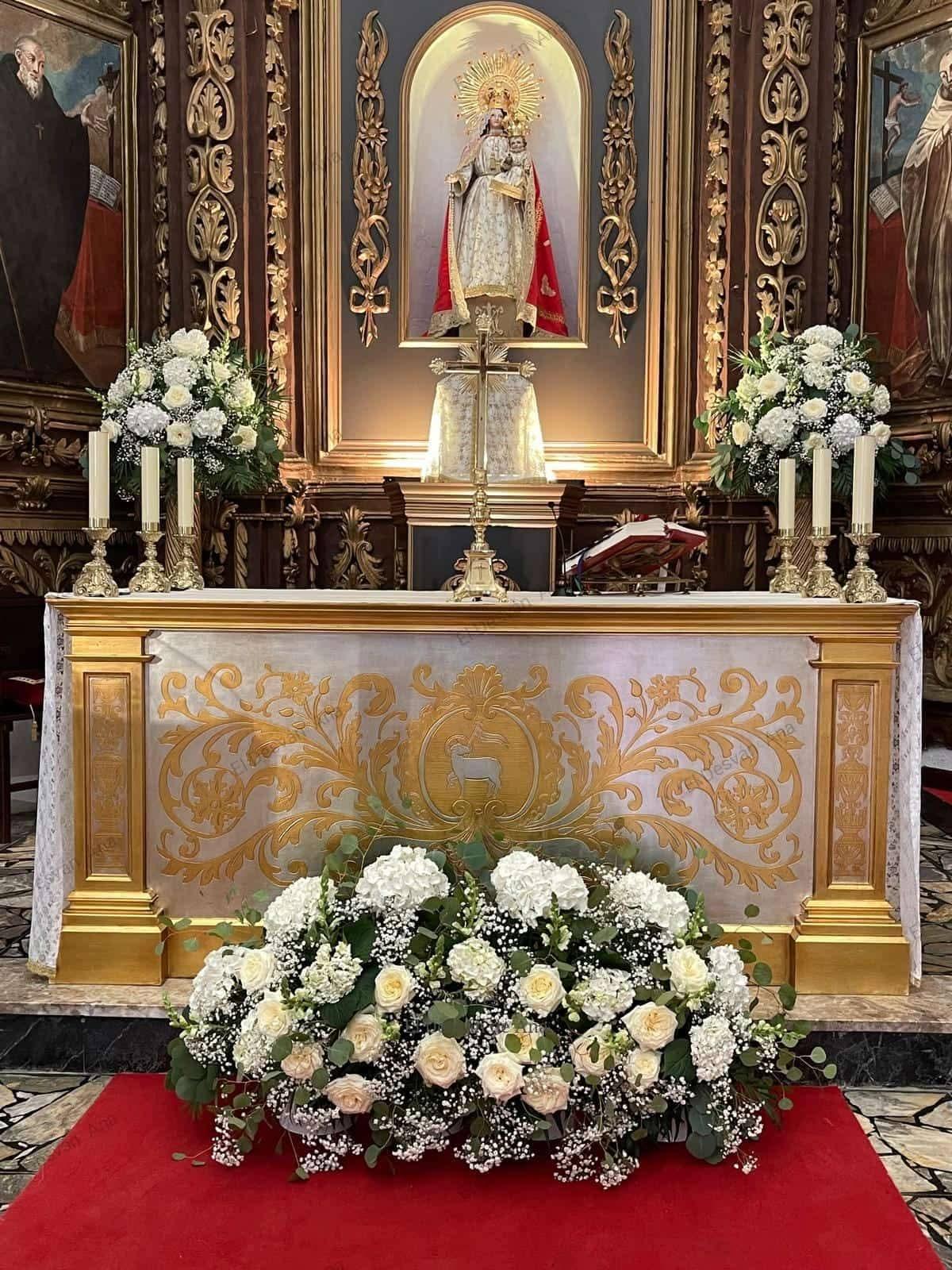 El centro transmite una sensación de frescura, sencillez y elegancia discreta. Es un arreglo que, además de ser visualmente atractivo. El resultado es un adorno que complementa perfectamente la solemnidad del evento.